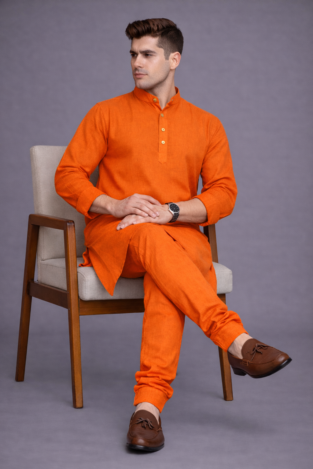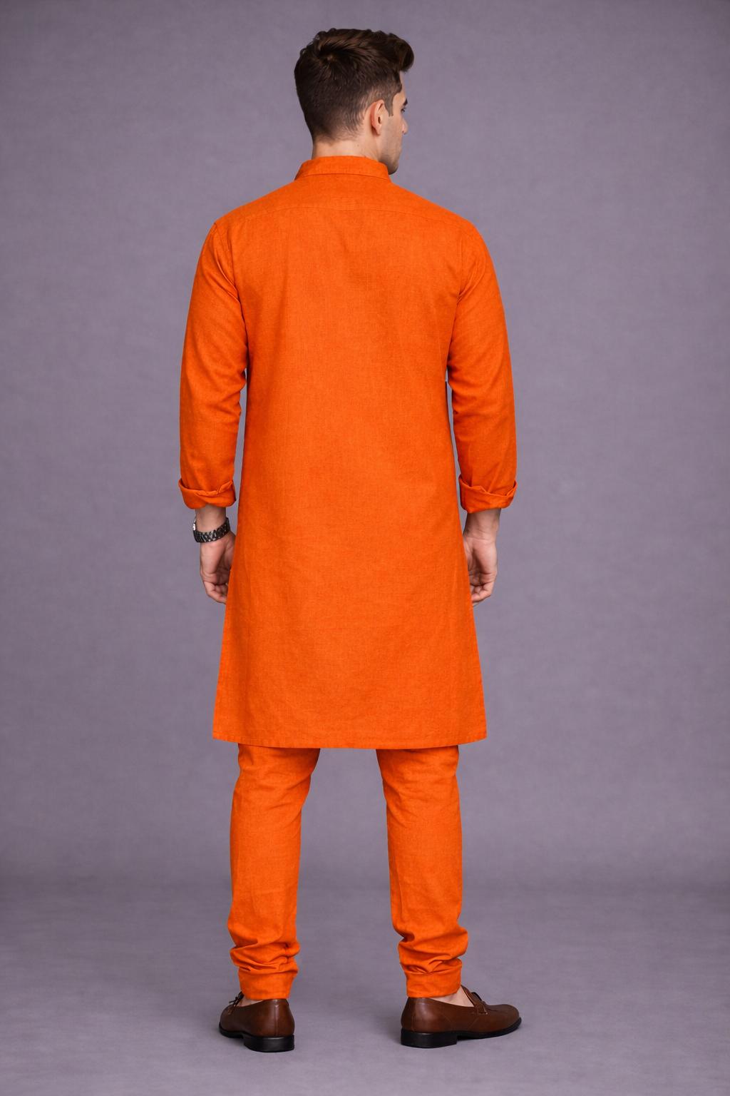 Men’s Bhagwa Saffron Kurta Pajama Set - Traditional Cotton Ethnic Wear