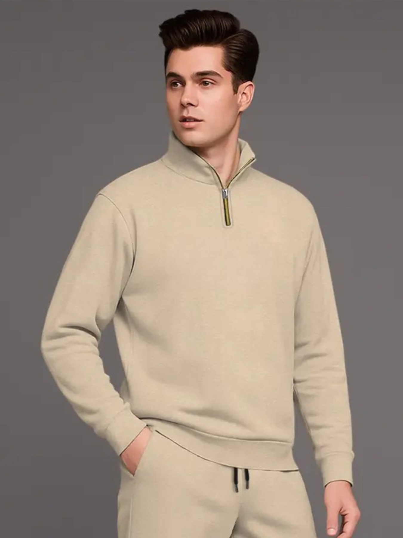 Men’s Premium Beige Zip-Neck Tracksuit | Modern Fit Athleisure Set