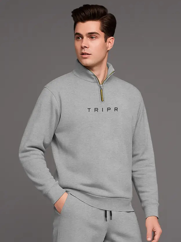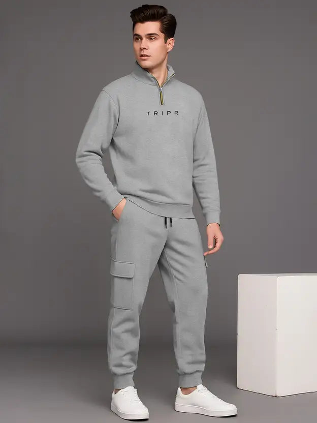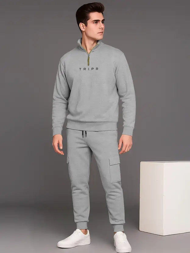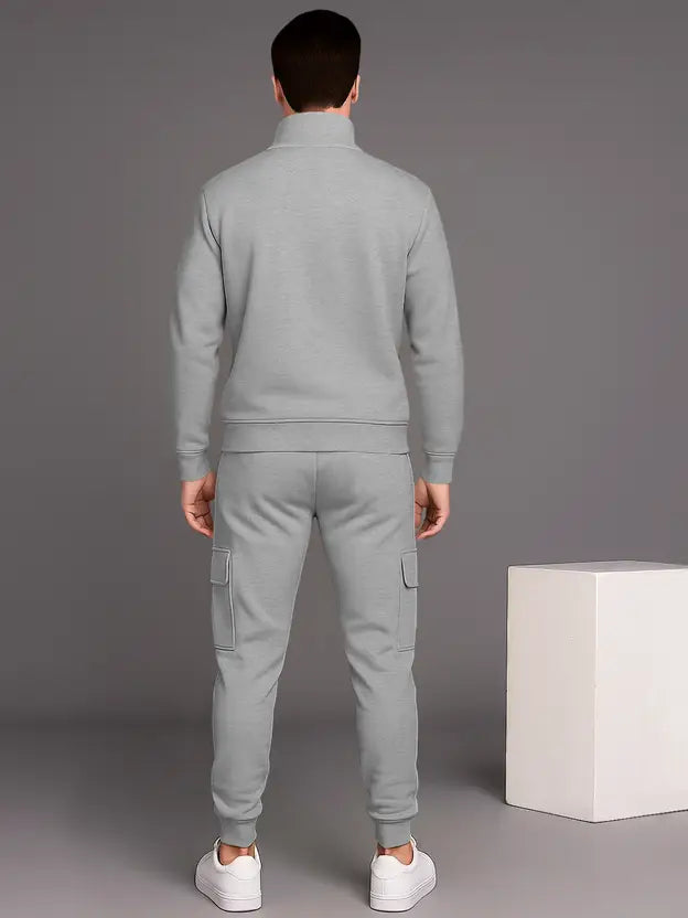 Men’s Premium Grey Zip-Neck Tracksuit | Modern Athleisure Set